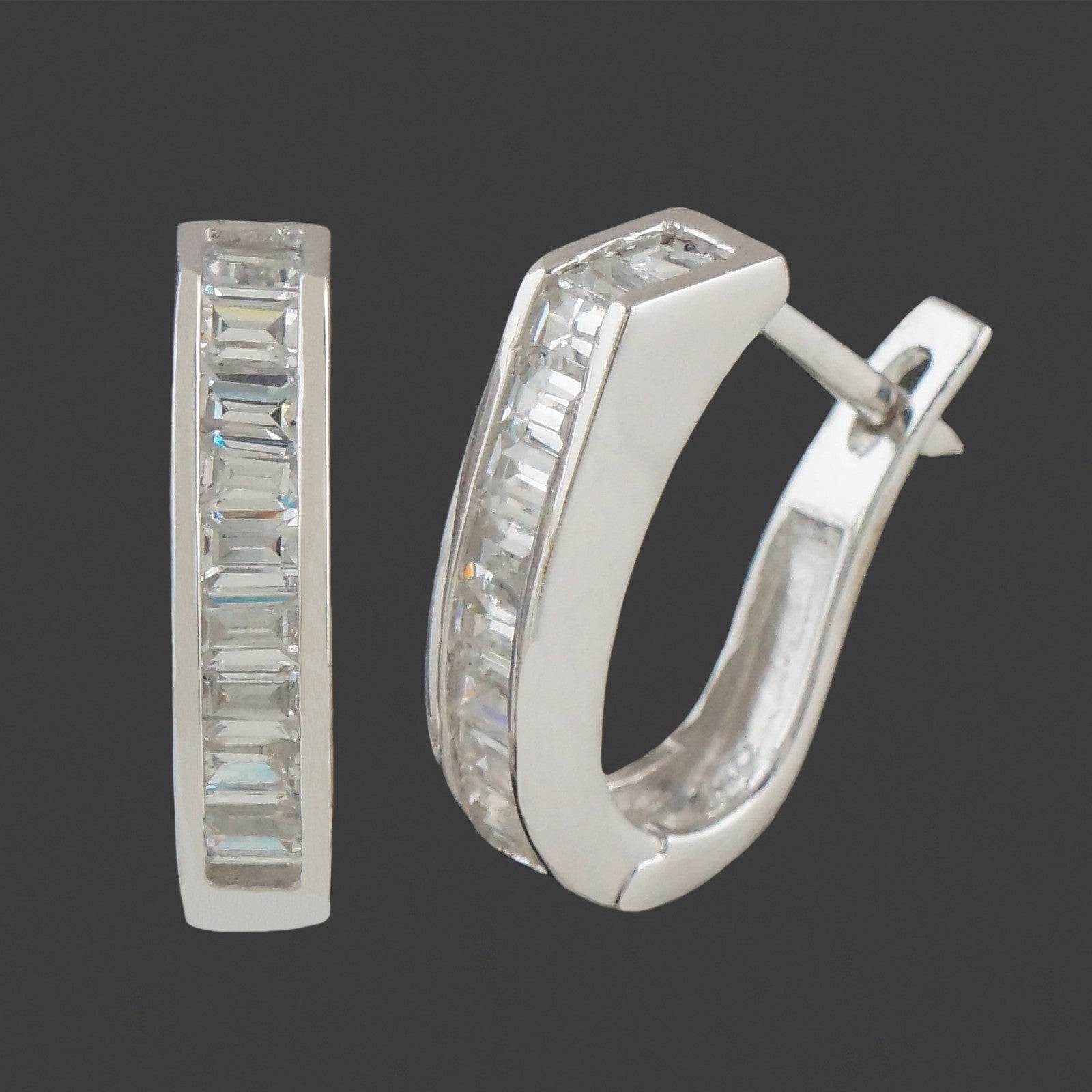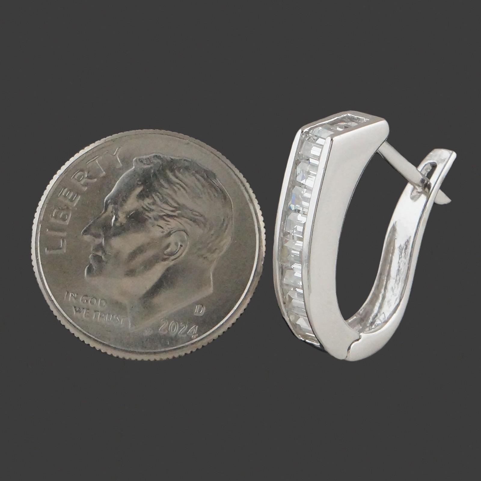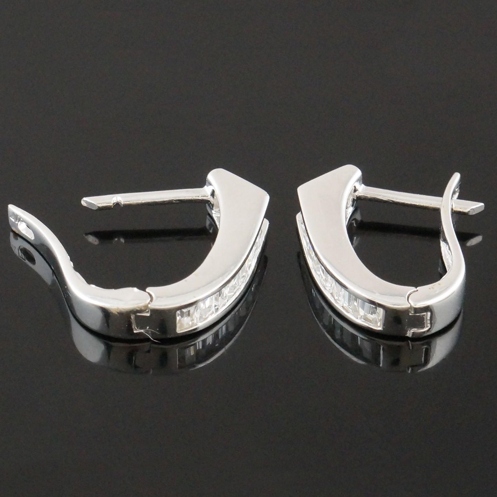 Solid 18K White Gold Baguette Diamond Hinged 3/4" Huggie Hoop Estate Earrings