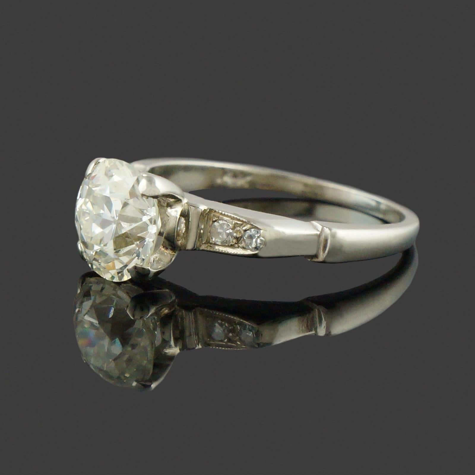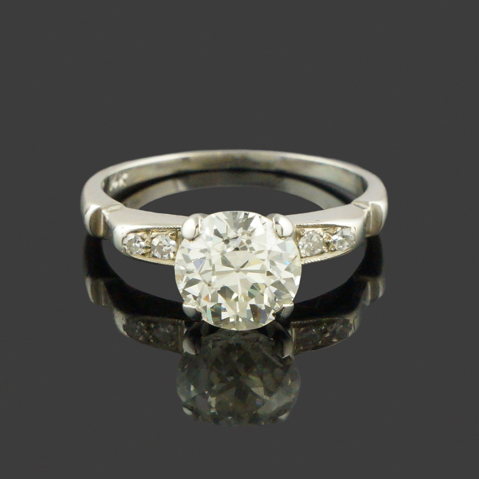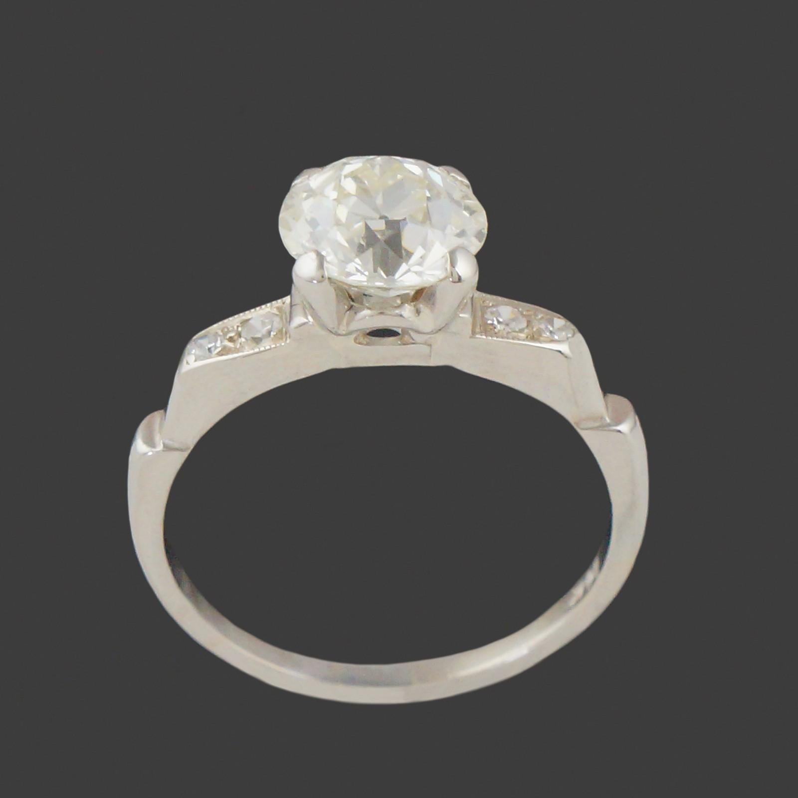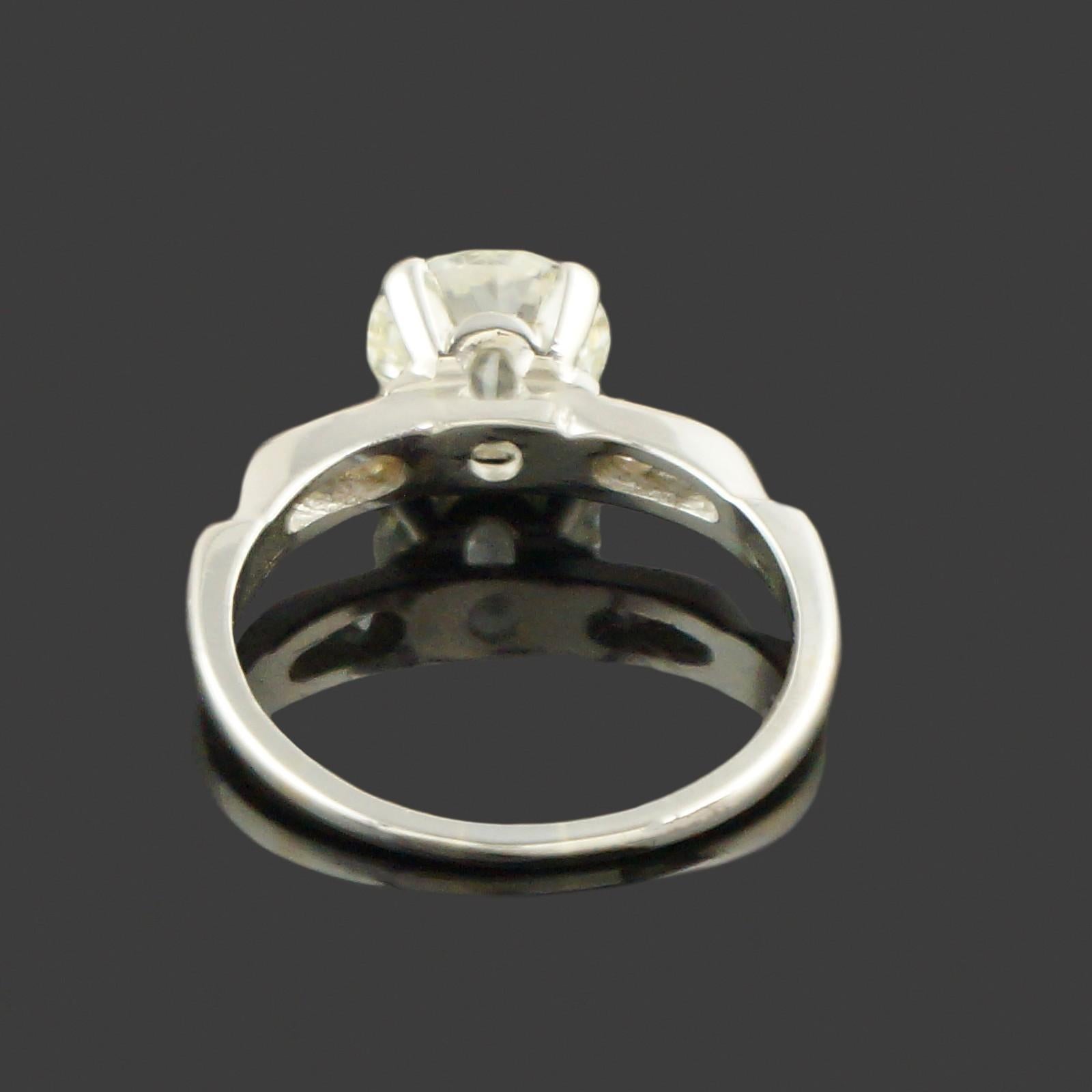 Solid 14K white gold and Old-European-Cut diamond engagement or wedding ring in excellent original condition. Some incredibly minor chips on girdle. High quality, beautifully made estate piece. Few signs of use, excellent overall. Please see our high resolution photos of this estate piece, with magnifying option, for your review.