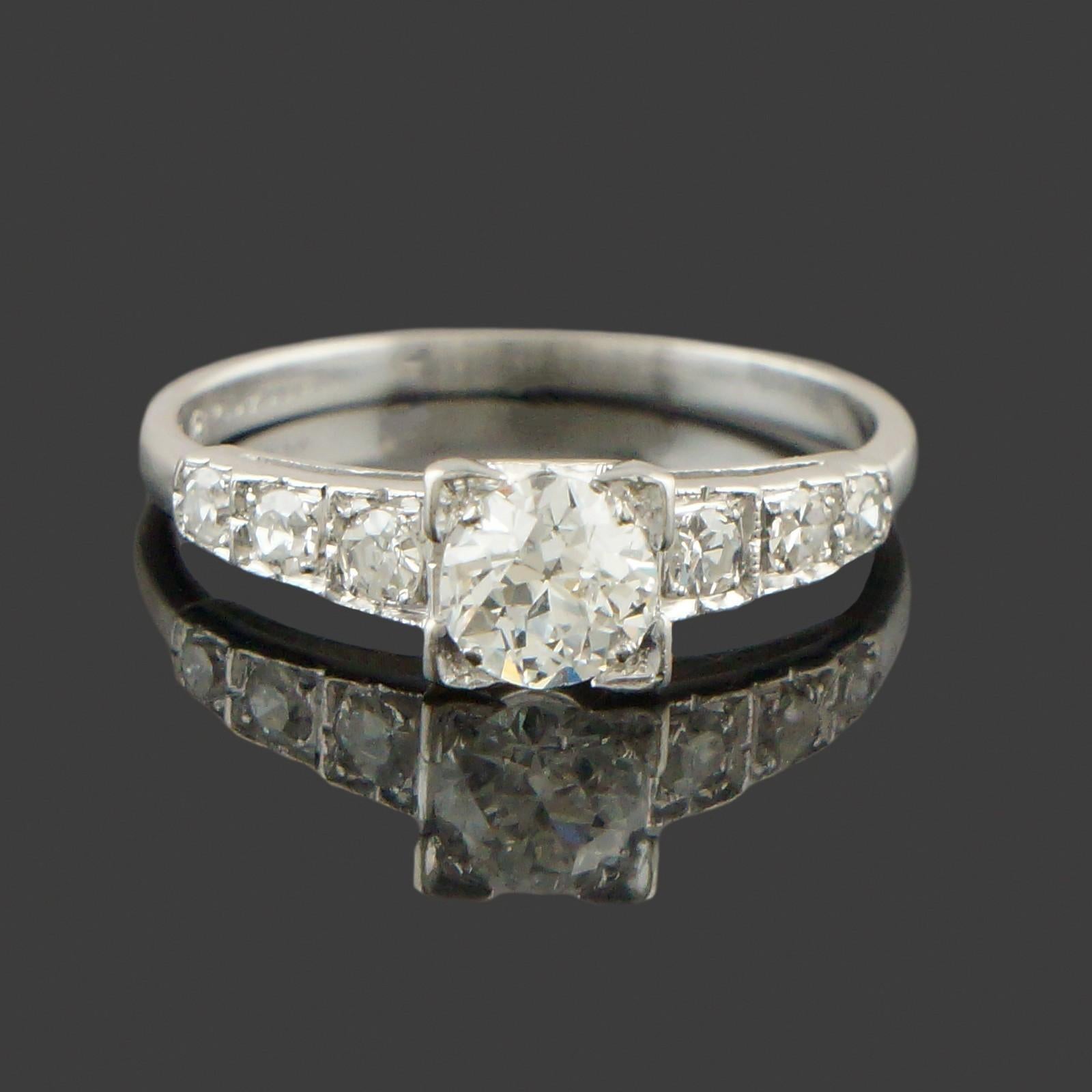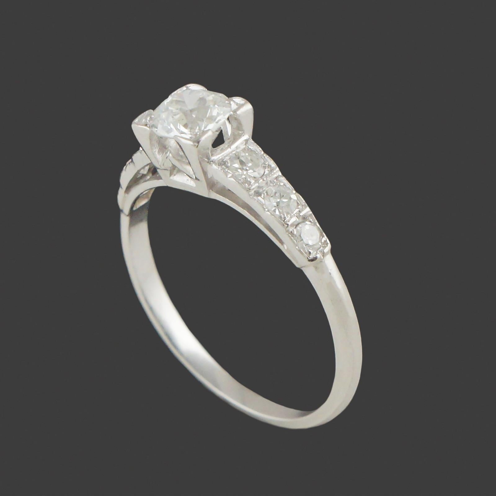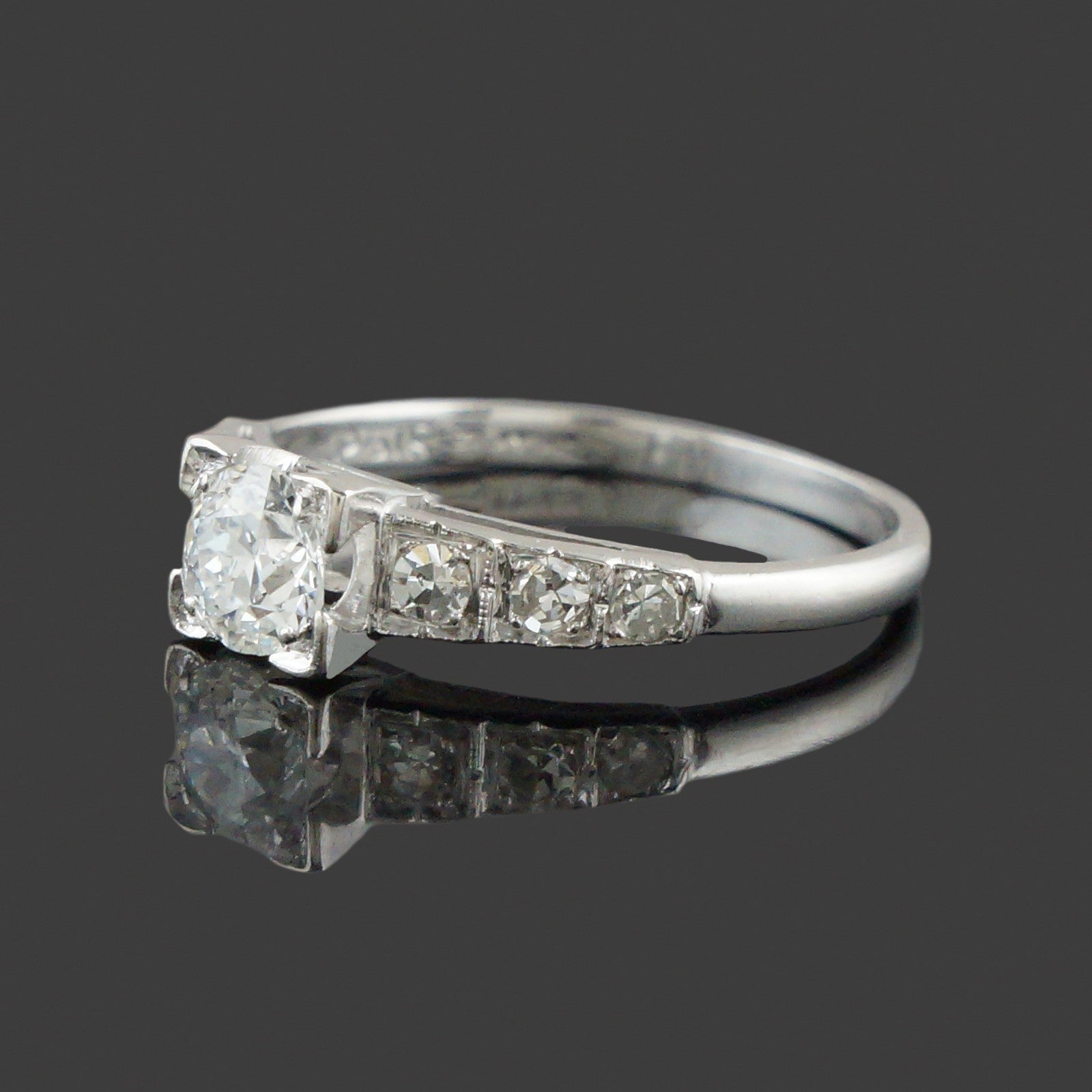 Vintage platinum and Old-European-Cut diamond engagement, wedding, or anniversary ring in excellent original condition. High quality and finely handcrafted ring. Please see our high resolution photos, with magnifying option, for your review.