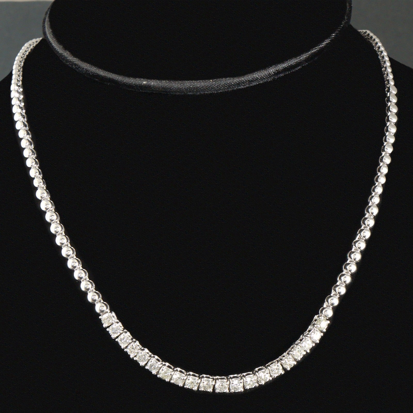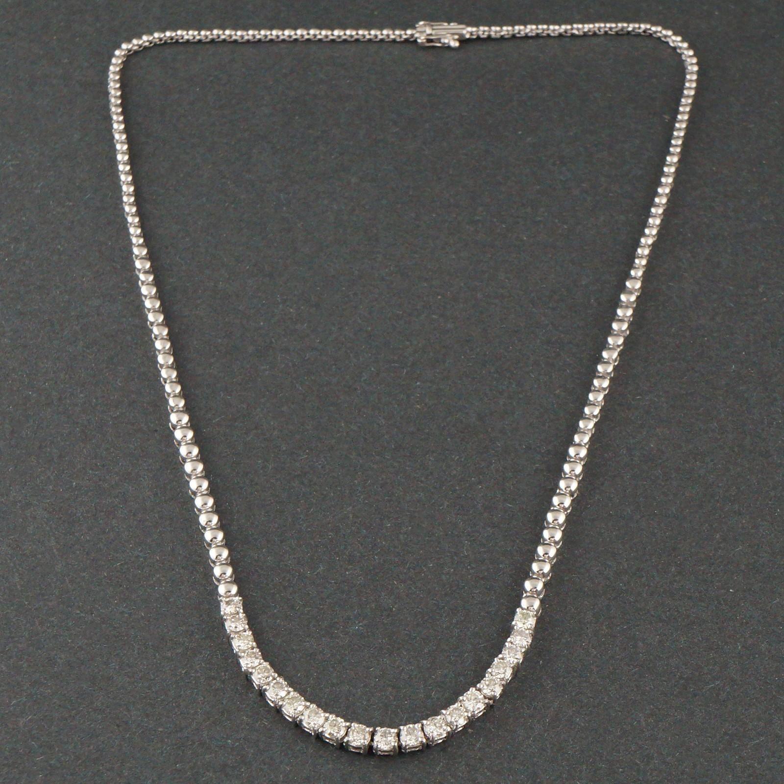 Elegant Solid 18K White Gold 2.00 CTW Diamond 17.5" Choker Tennis Necklace
