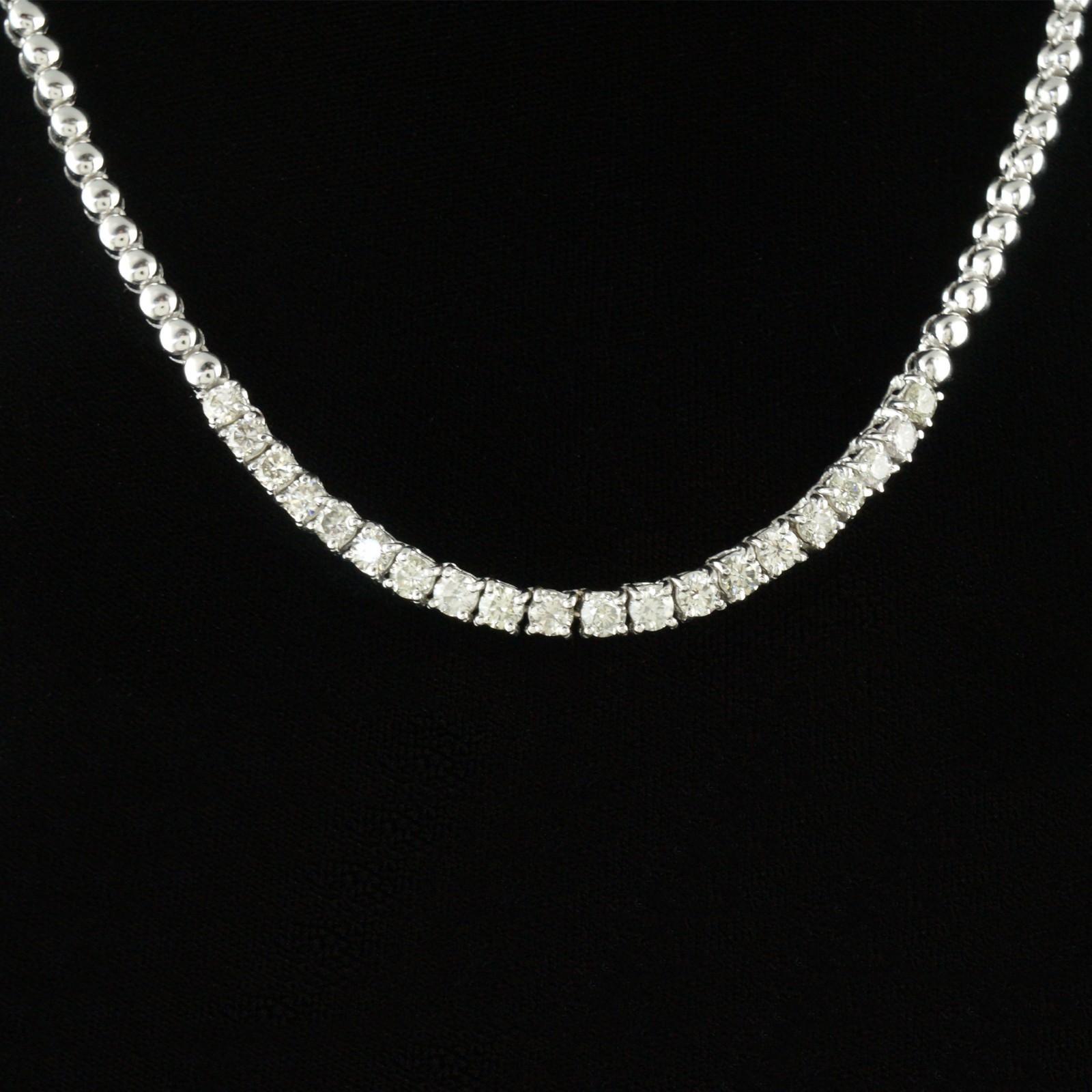 Elegant solid 18K white gold and diamond choker tennis necklace, in excellent original condition.  Extremely high quality and expertly handcrafted custom piece.  Few signs of use, excellent overall. Please see our high resolution photos, with magnifying option, for your review.