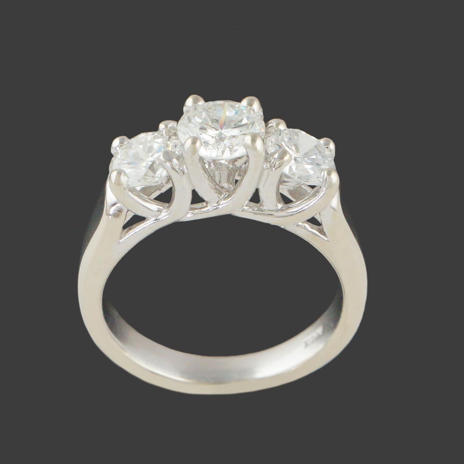 Modern Solid 14K White Gold Diamond 3 Stone Engagement Wedding Anniversary Ring