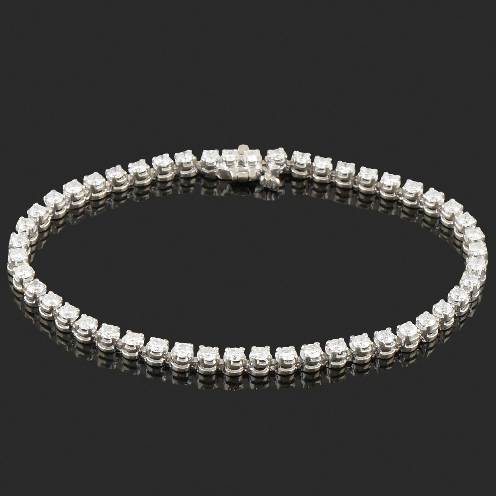 Solid 14K White Gold & 3.25 CTW Round Diamond Line Link 7 1/4" Tennis Bracelet
