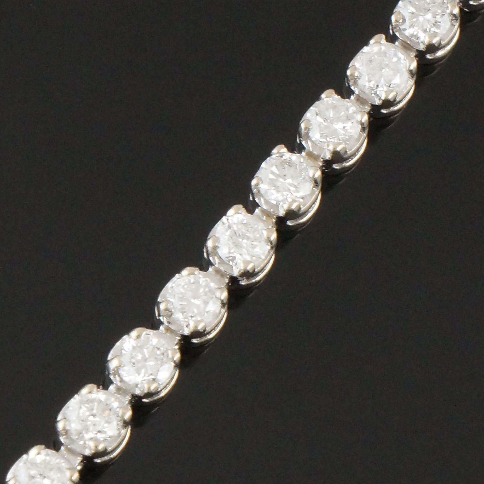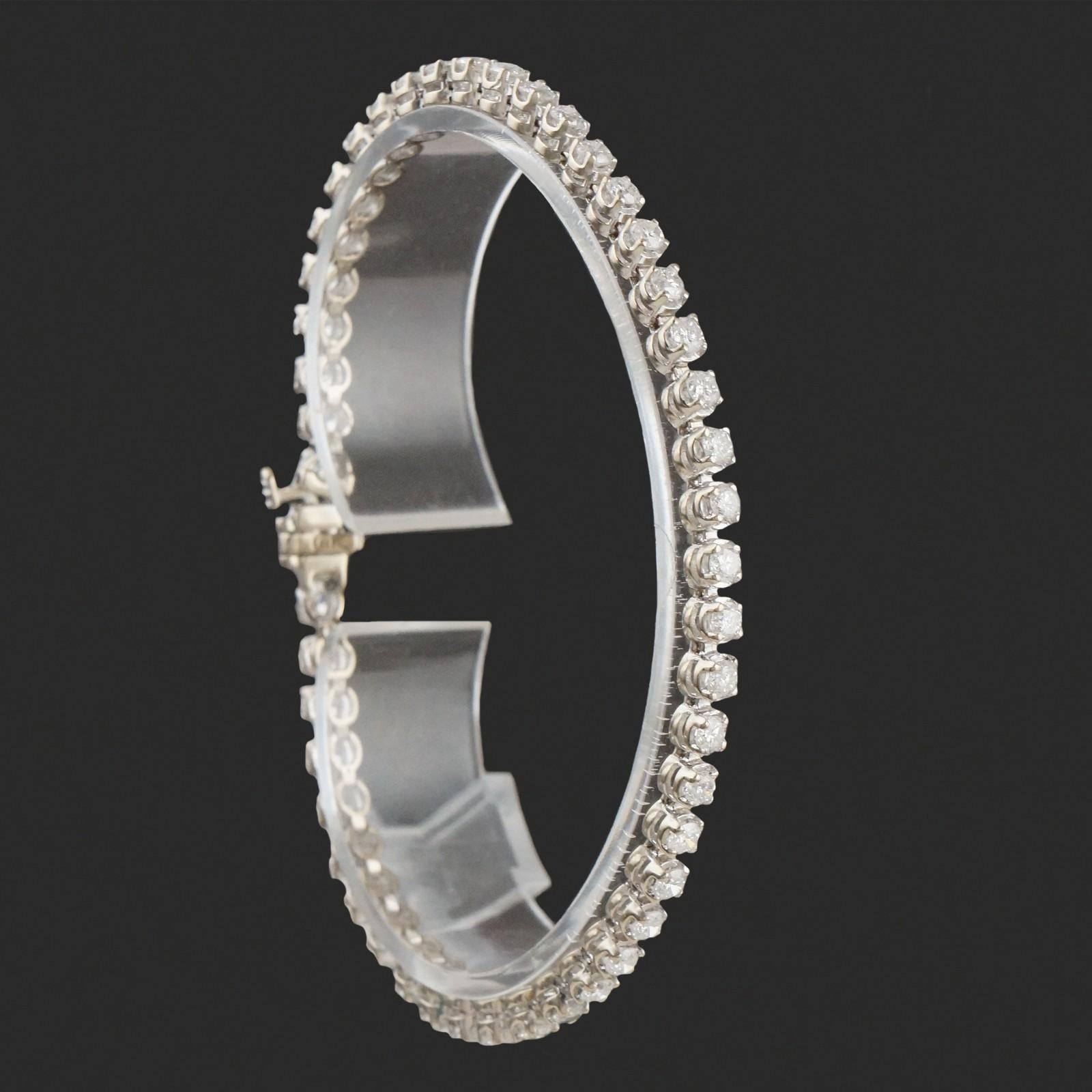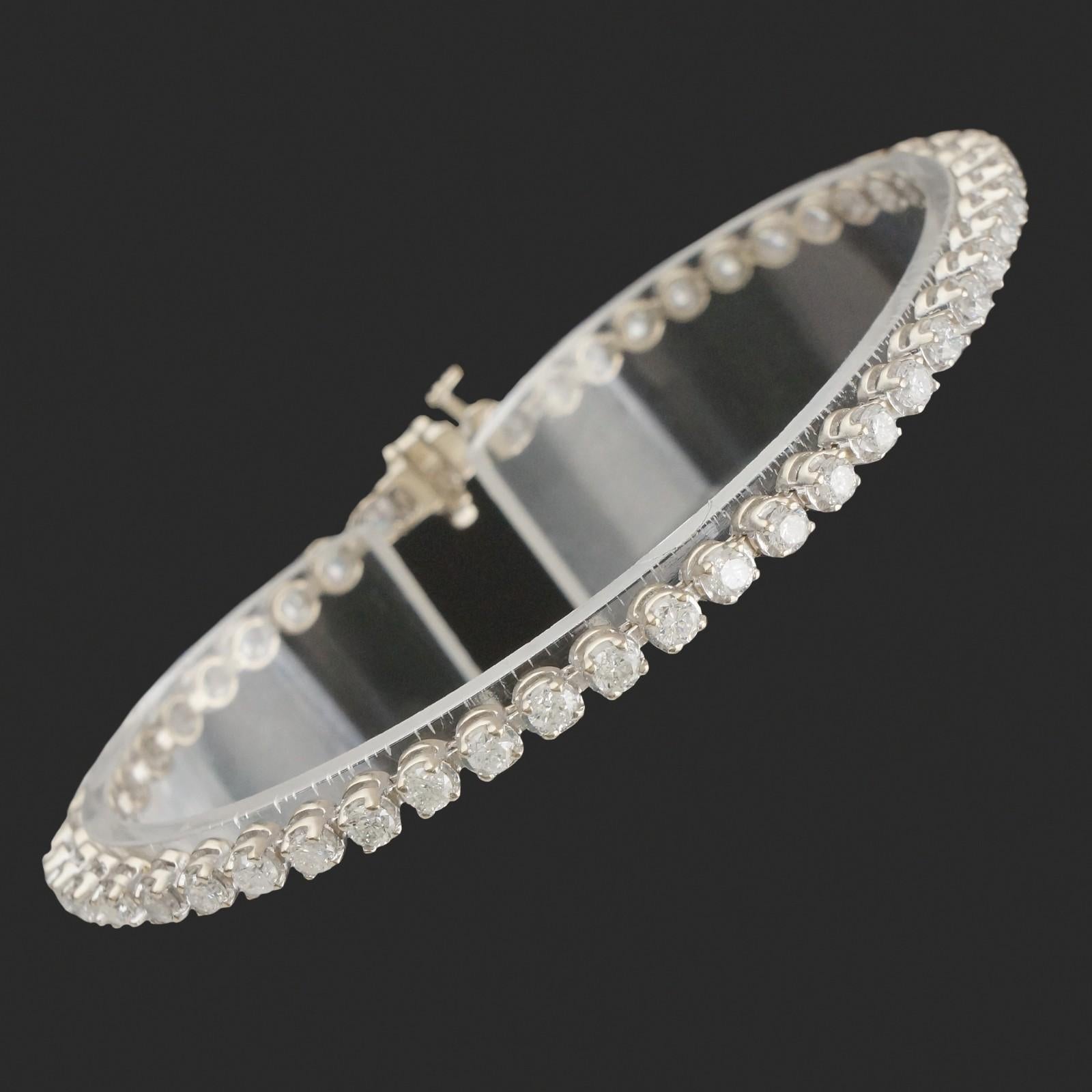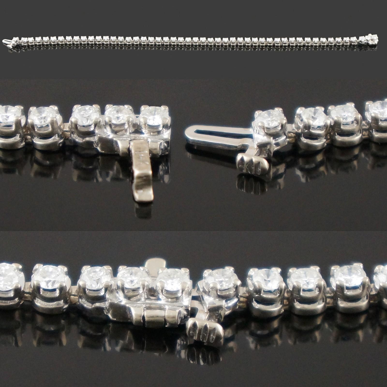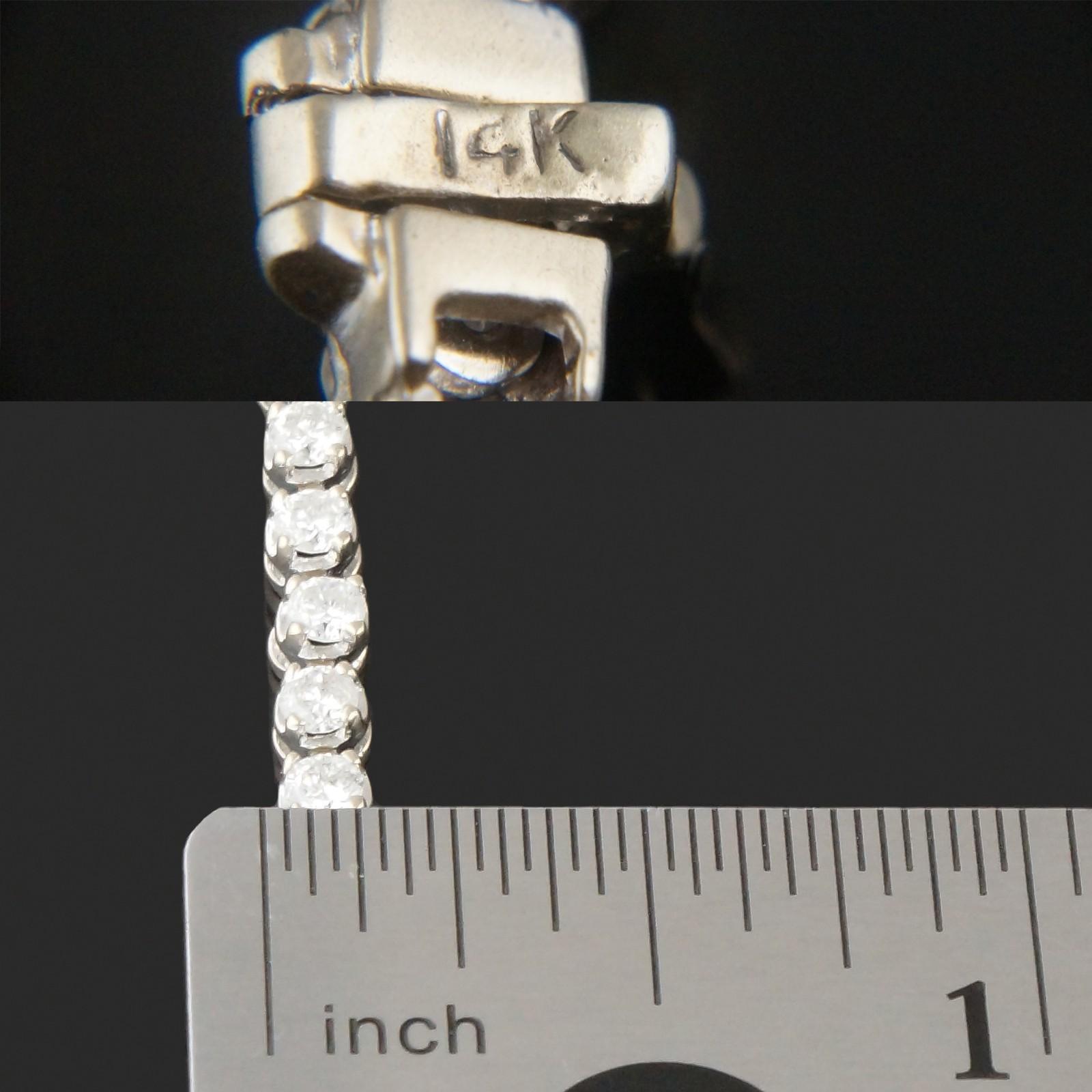 Elegant solid 14K white gold and diamond line tennis bracelet in excellent original condition. High quality, expertly made estate piece. Few signs of use, excellent overall. Please see our high resolution photos, with magnifying option, for your review.