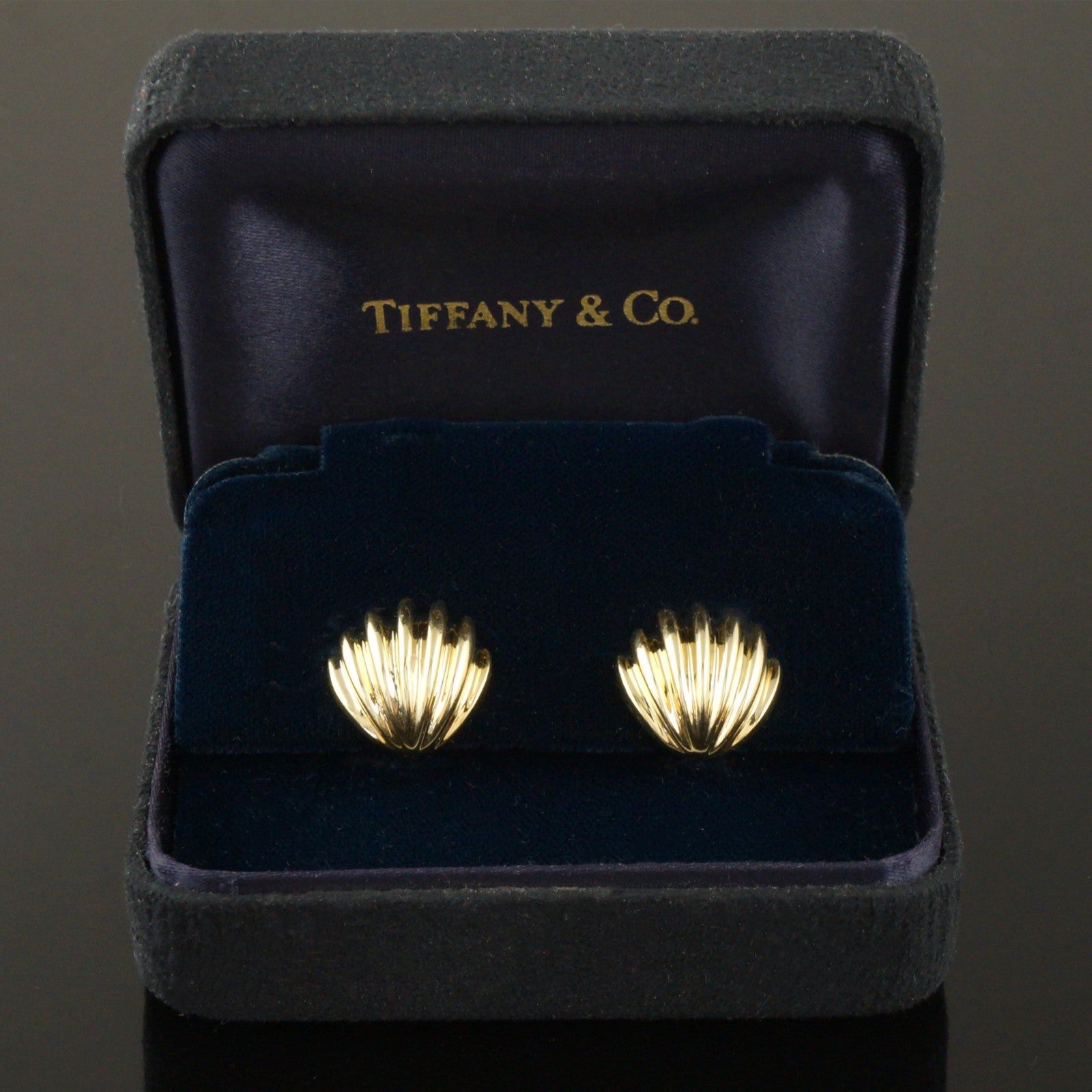Tiffany & Co. Solid 18K Yellow Gold Sea Shell Pressure Back Earrings w/ Orig Box