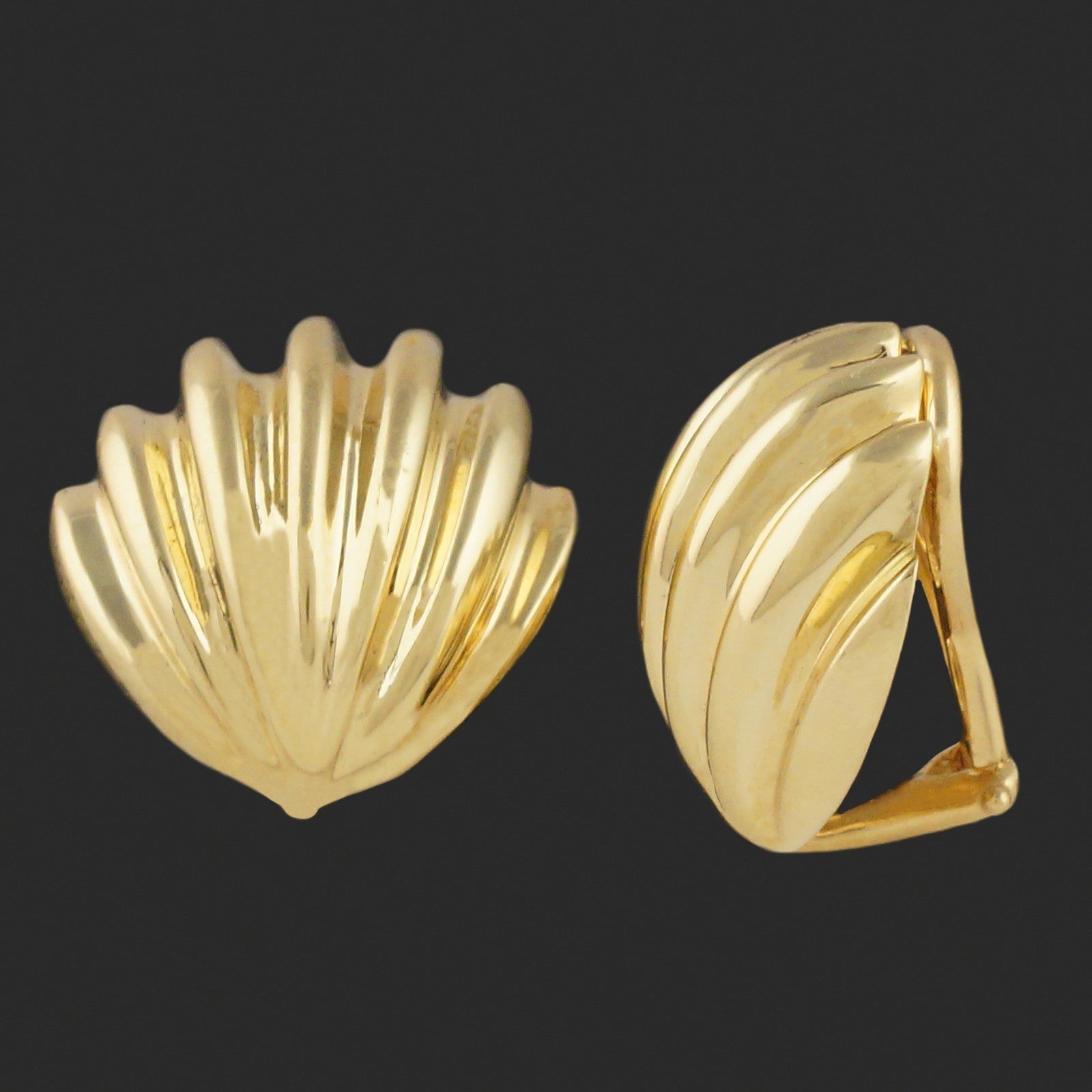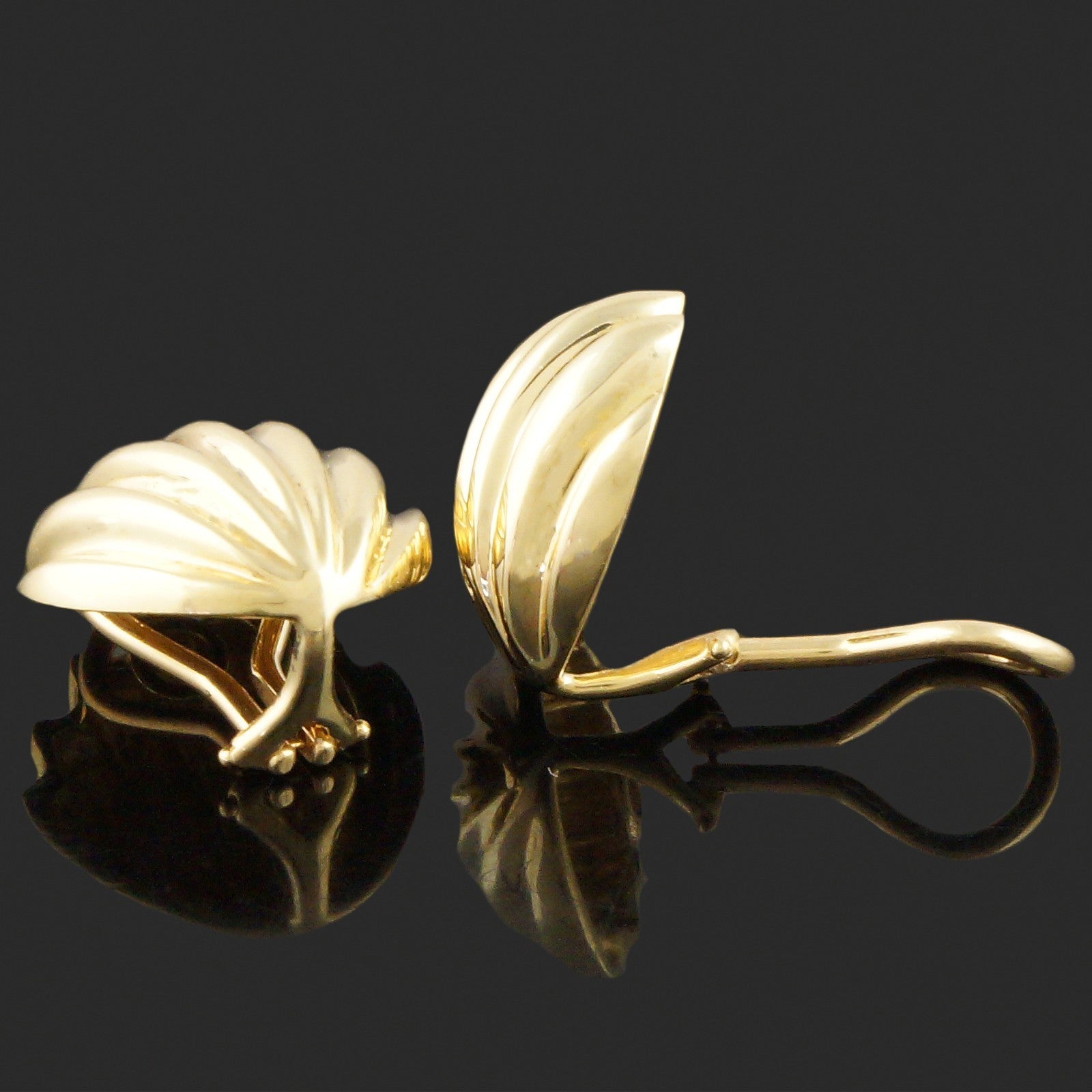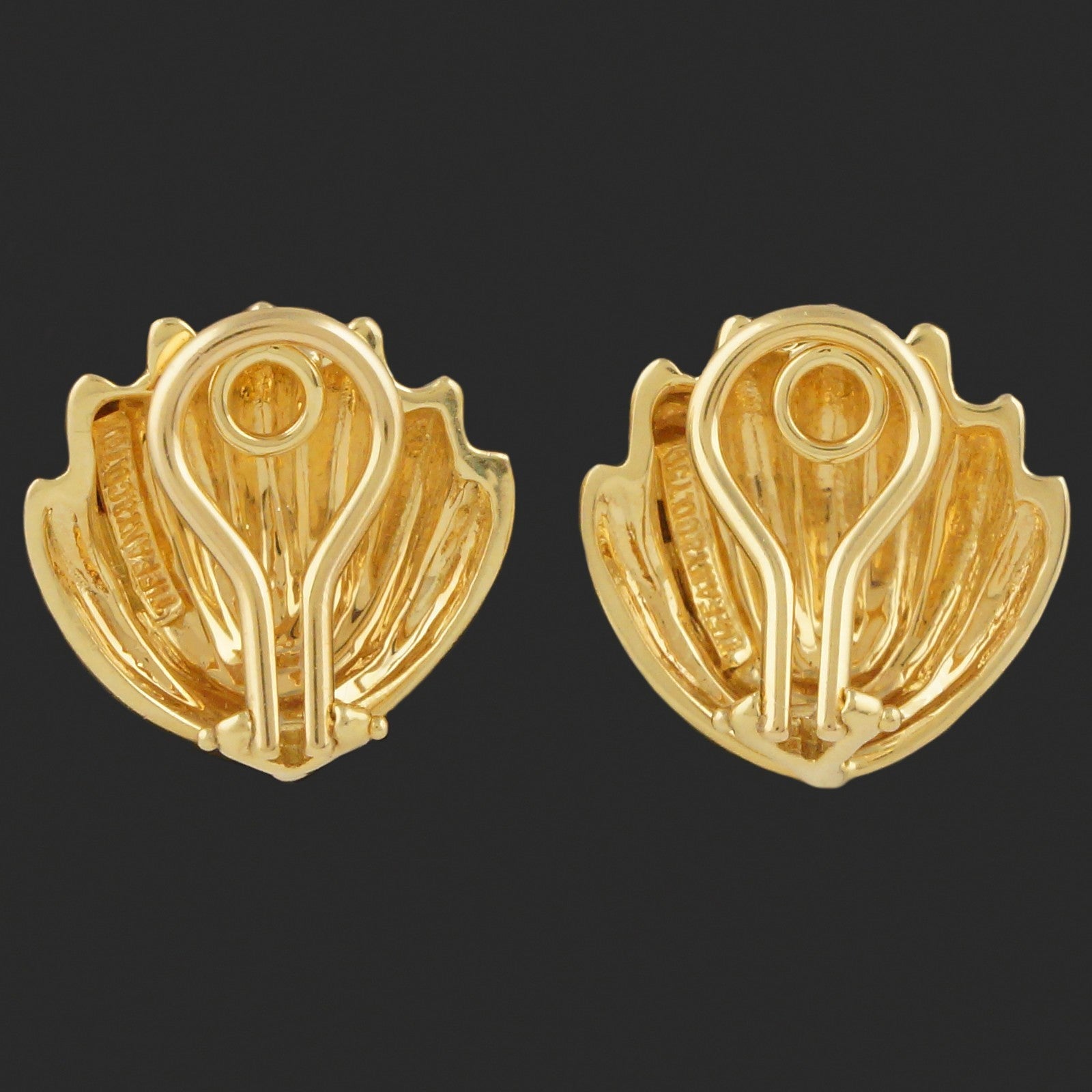 Tiffany & Co. heavy solid 18K yellow gold sea shell pressure back huggie clip earrings in excellent original condition.