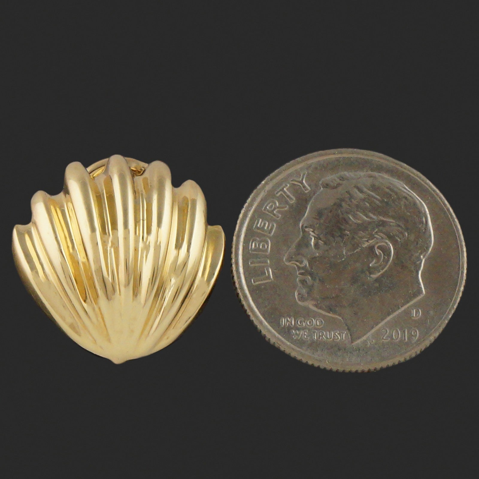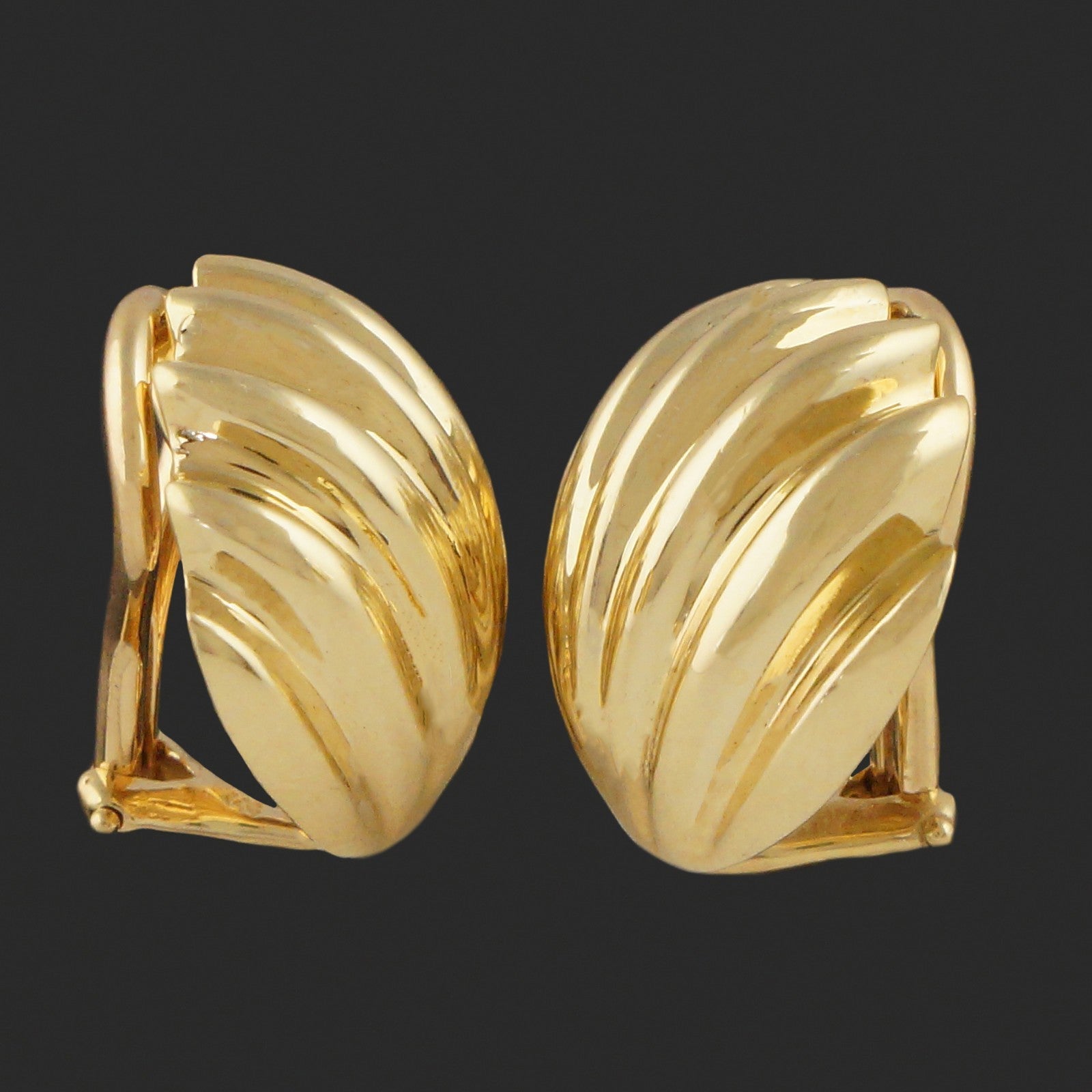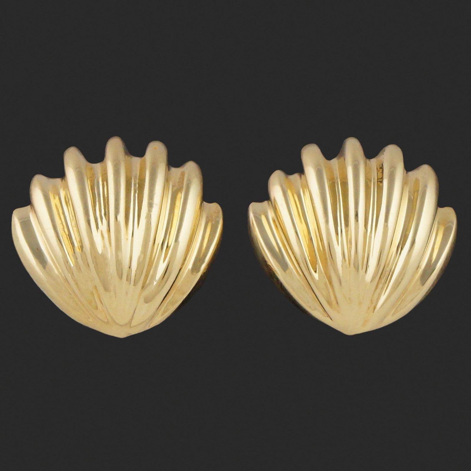Tiffany & Co. heavy solid 18K yellow gold sea shell pressure back huggie clip earrings in excellent original condition.
