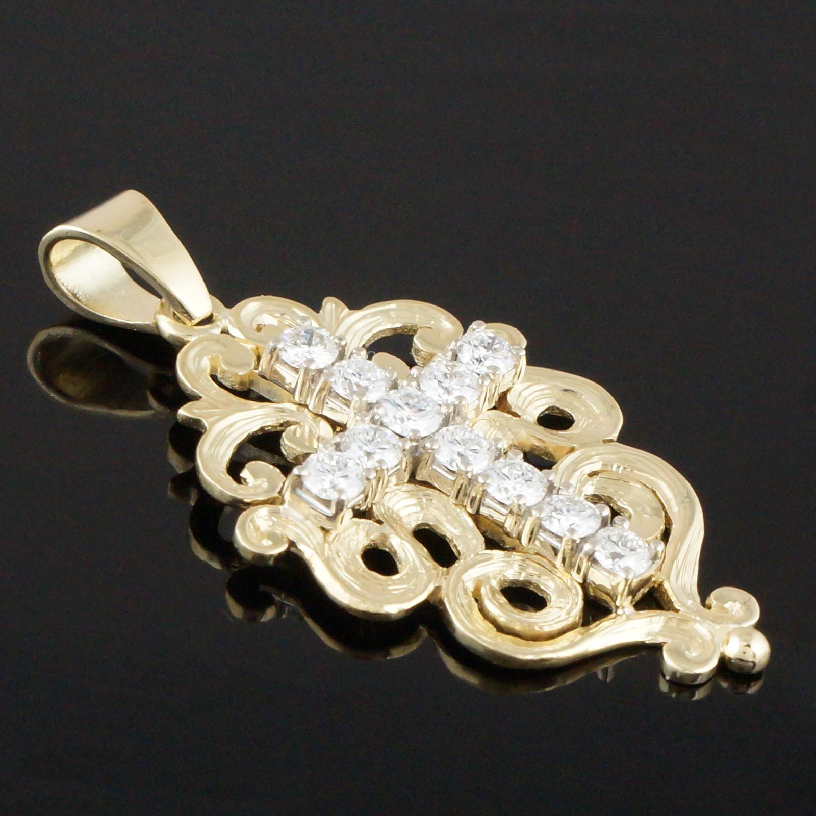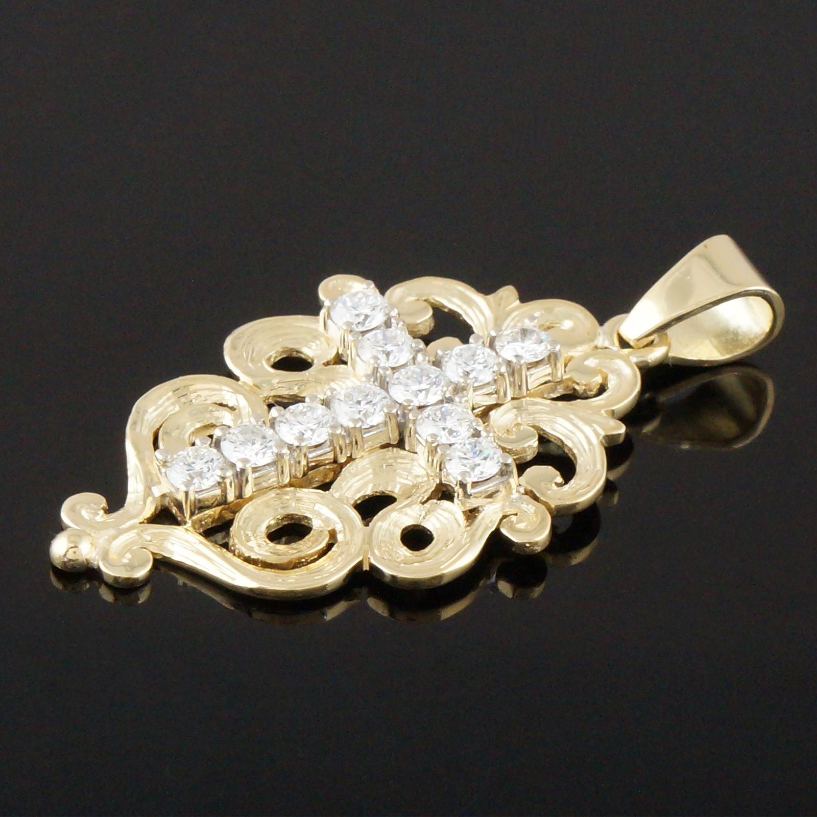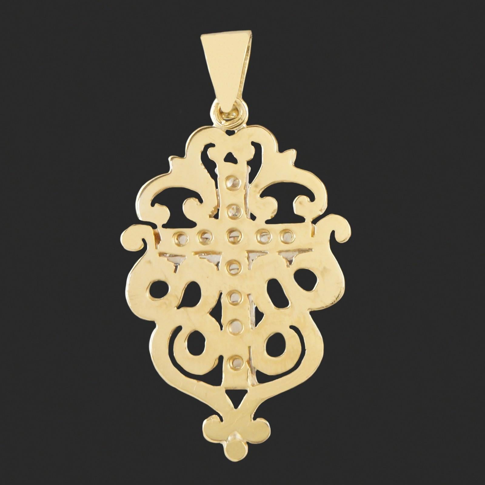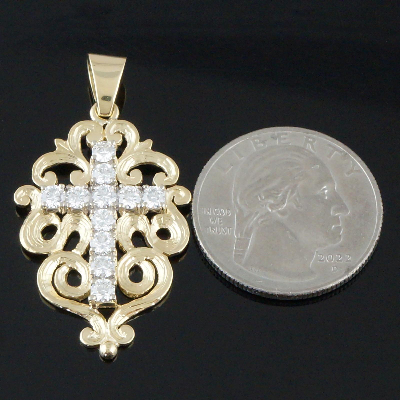 Two Tone Solid 18K Gold Filigree & Diamond Ornate Holy Cross Estate Pendant
