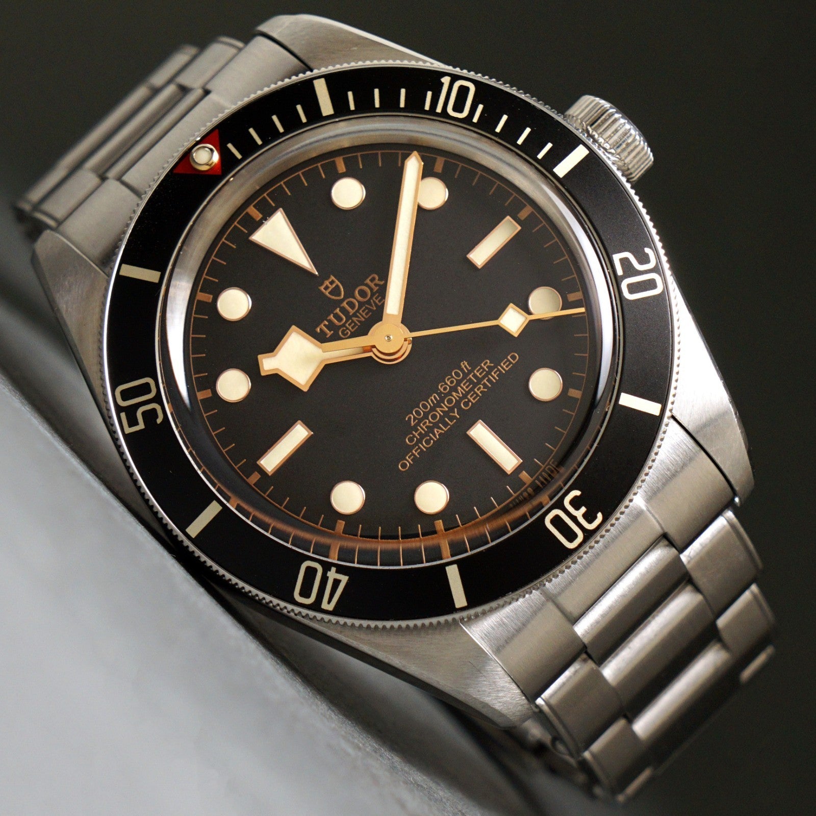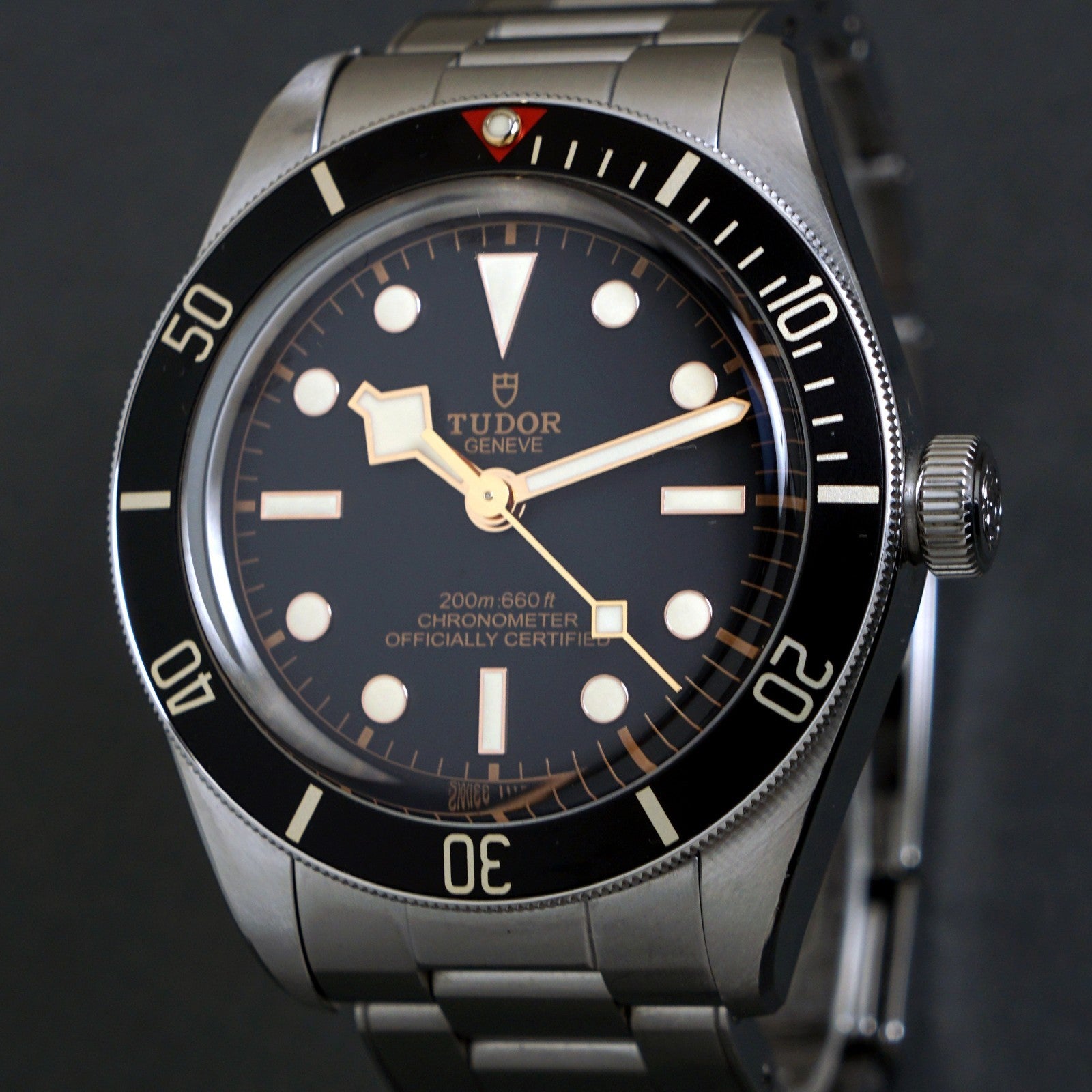 Stunning 2022 Tudor Heritage Black Bay 79030 stainless steel man's dive watch in excellent original condition. Gorgeous example complete with everything from new - inner and outer boxes, card, books, links and tag. The stainless steel case and bracelet show little signs of use, excellent condition overall. Excellent crystal and signed crown. Excellent original dial, hands and markers. Inside, the automatic movement is currently running strong and keeping excellent time although service history unknown. Fitted to its original stainless steel bracelet with signed clasp as shown. Case measures 39mm wide with 20mm lugs. Will fit up to a size 8" wrist with all links installed. Comes with its original boxes, books, card, tags and all its links as shown. Authenticity unconditionally guaranteed.