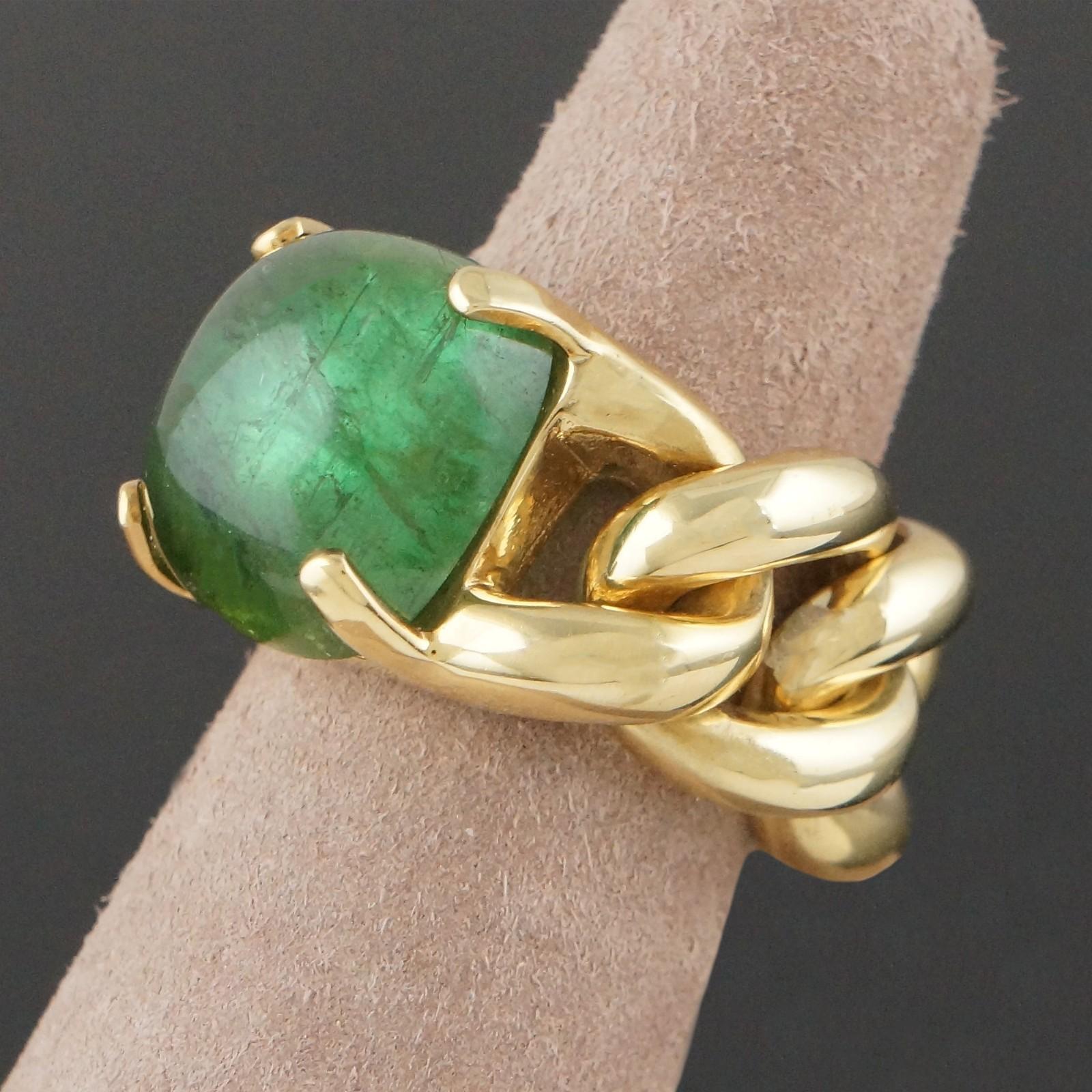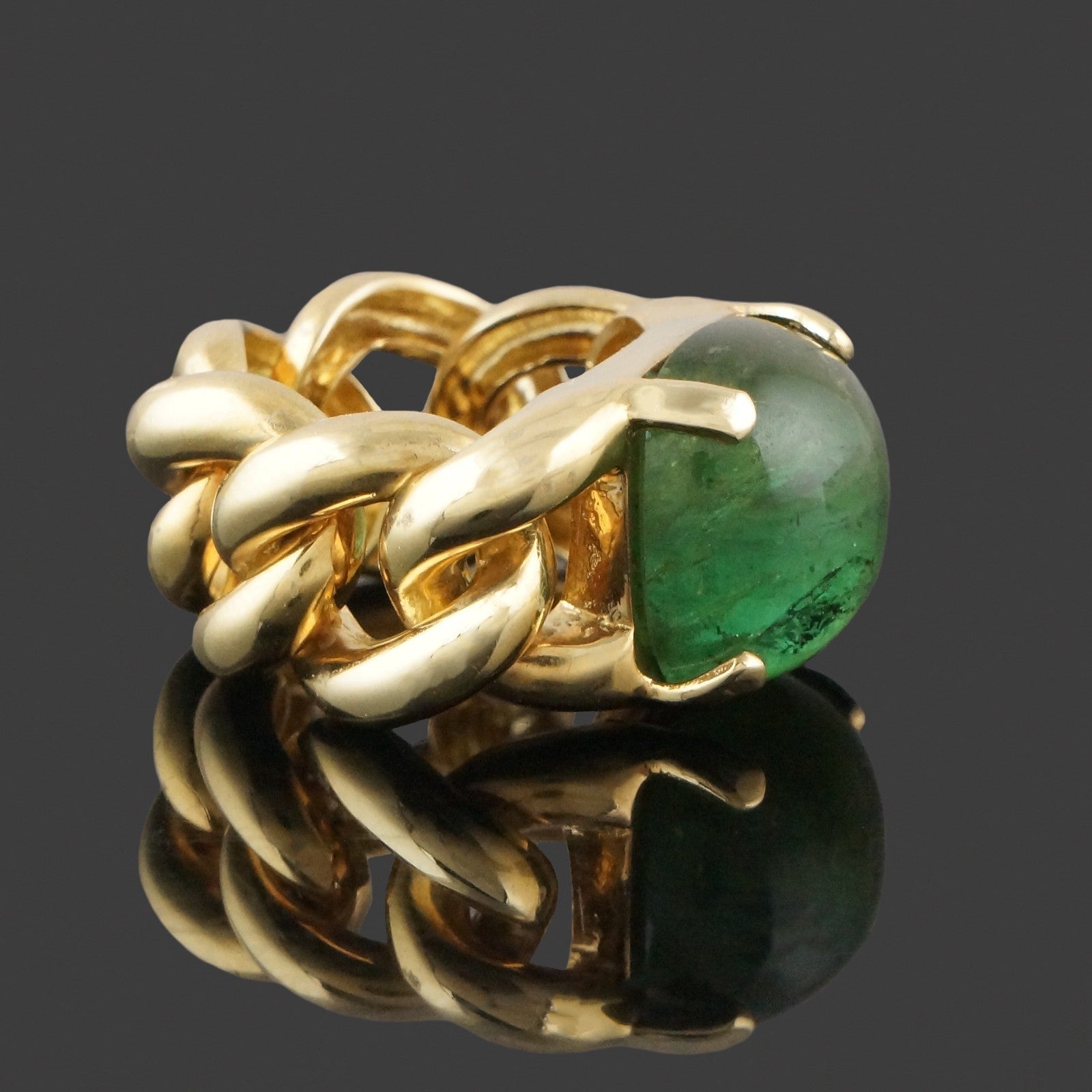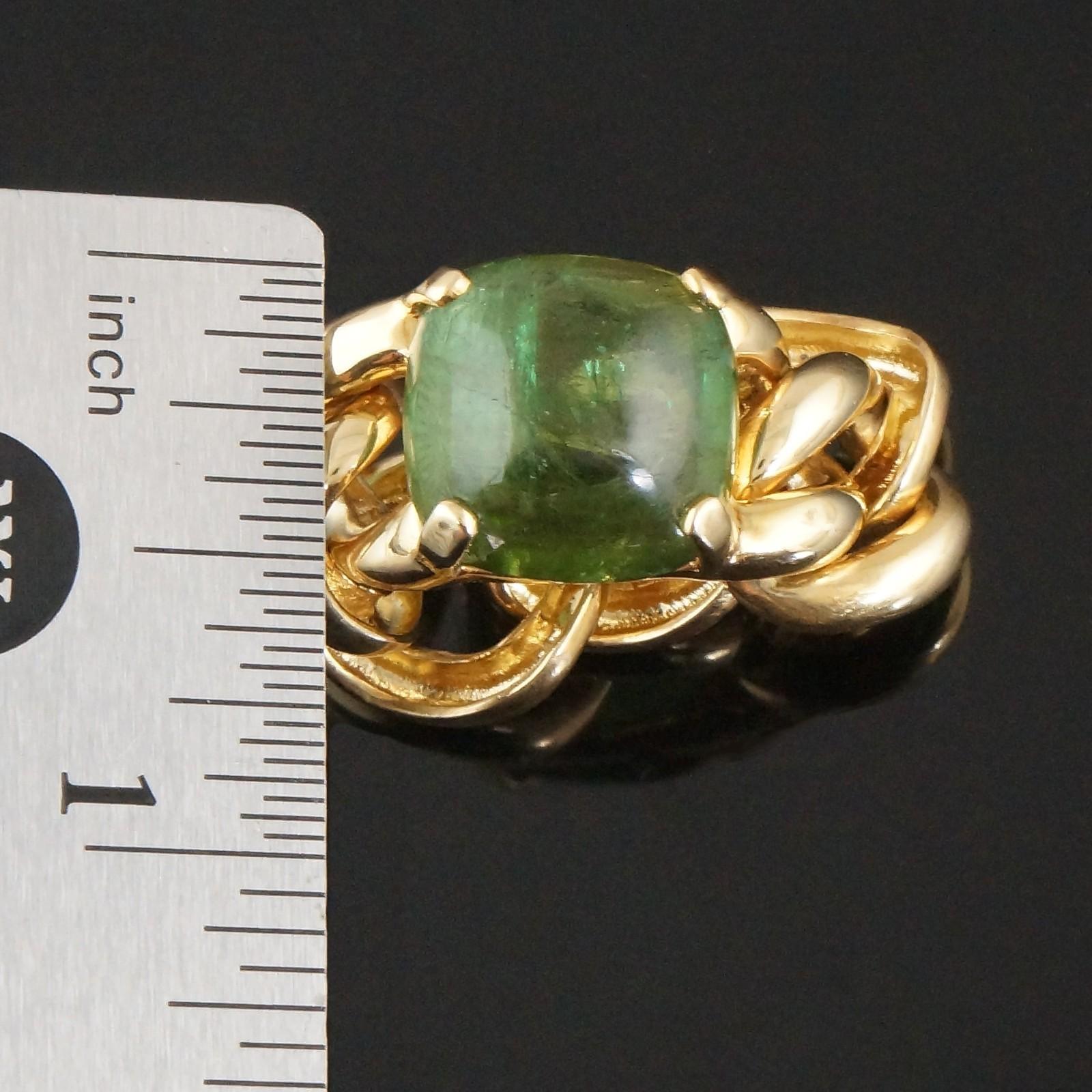 Heavy Solid 18K Yellow Gold, 15.0 Ct Tourmaline Cabochon Chain Link Estate Ring