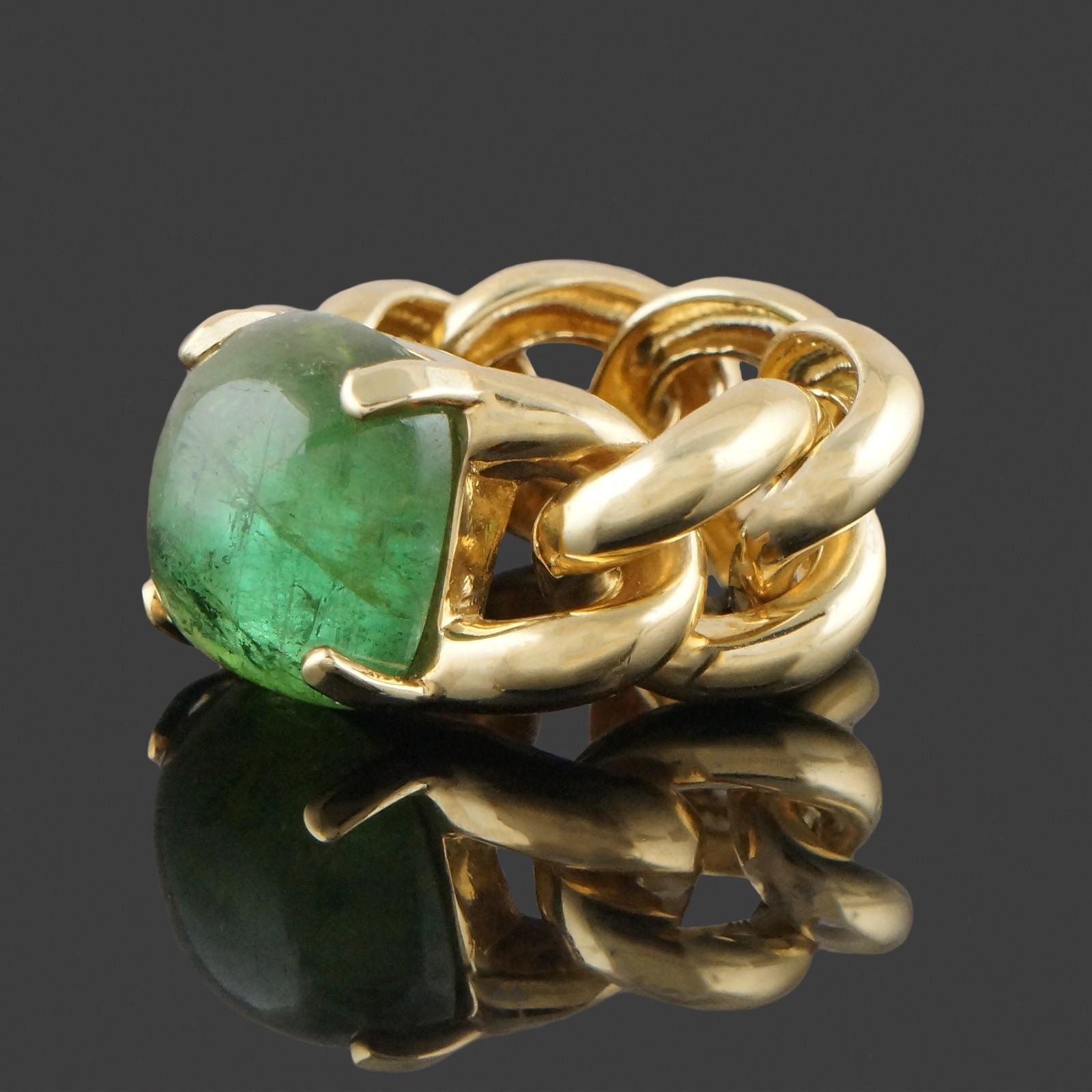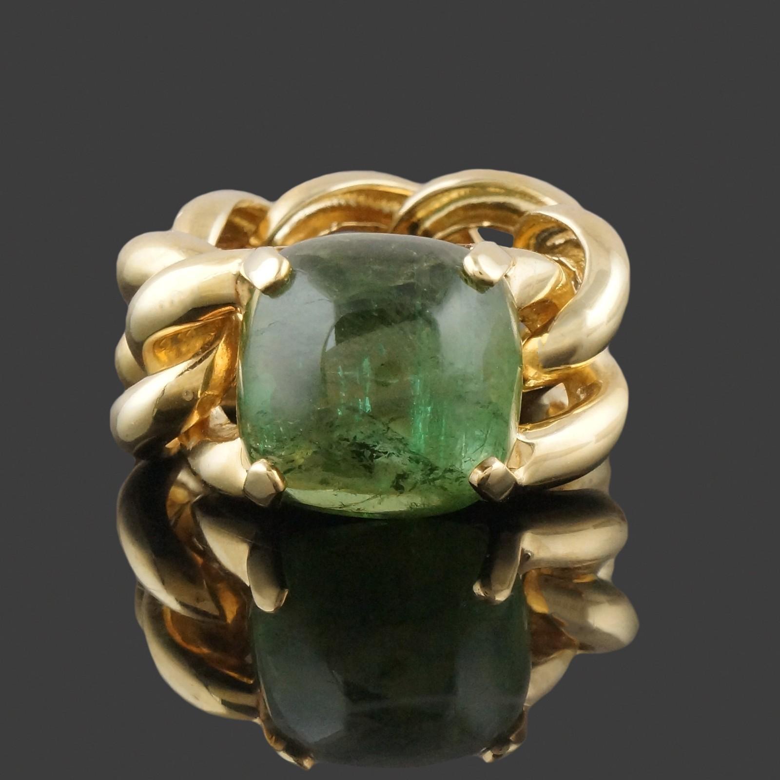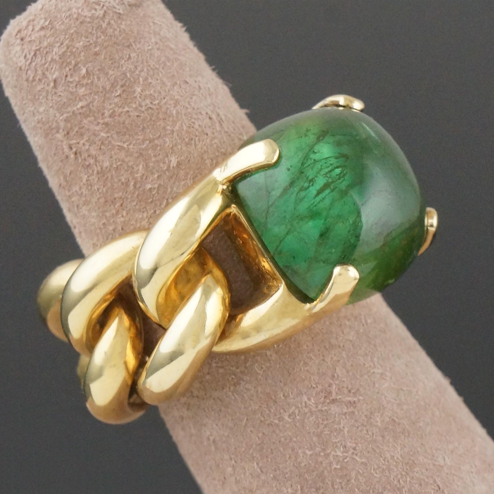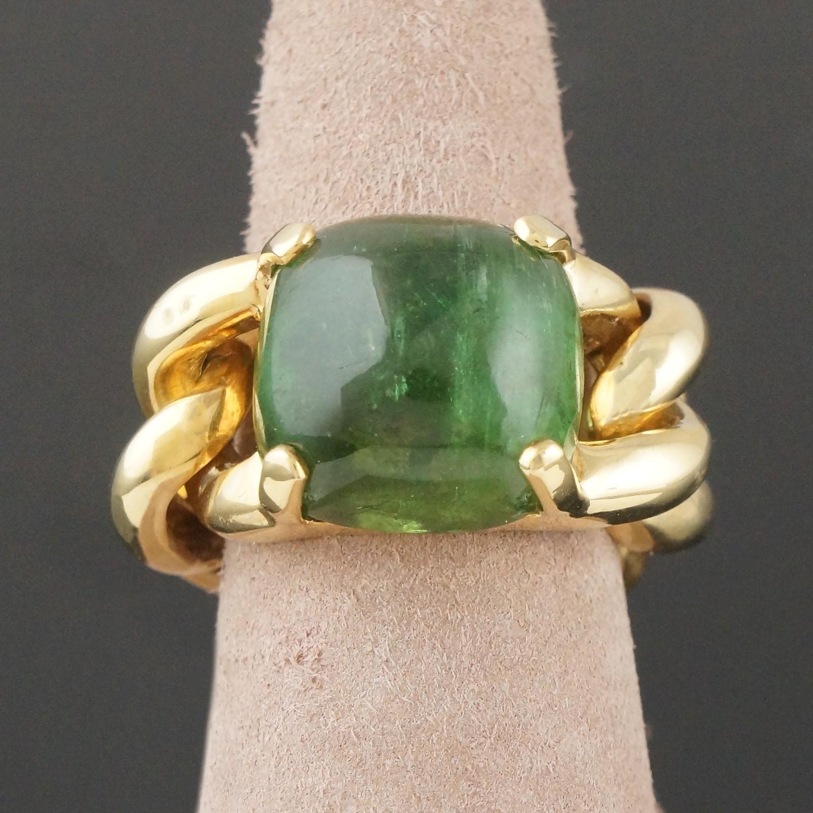 Heavy Solid 18K Yellow Gold, 15.0 Ct Tourmaline Cabochon Chain Link Estate Ring