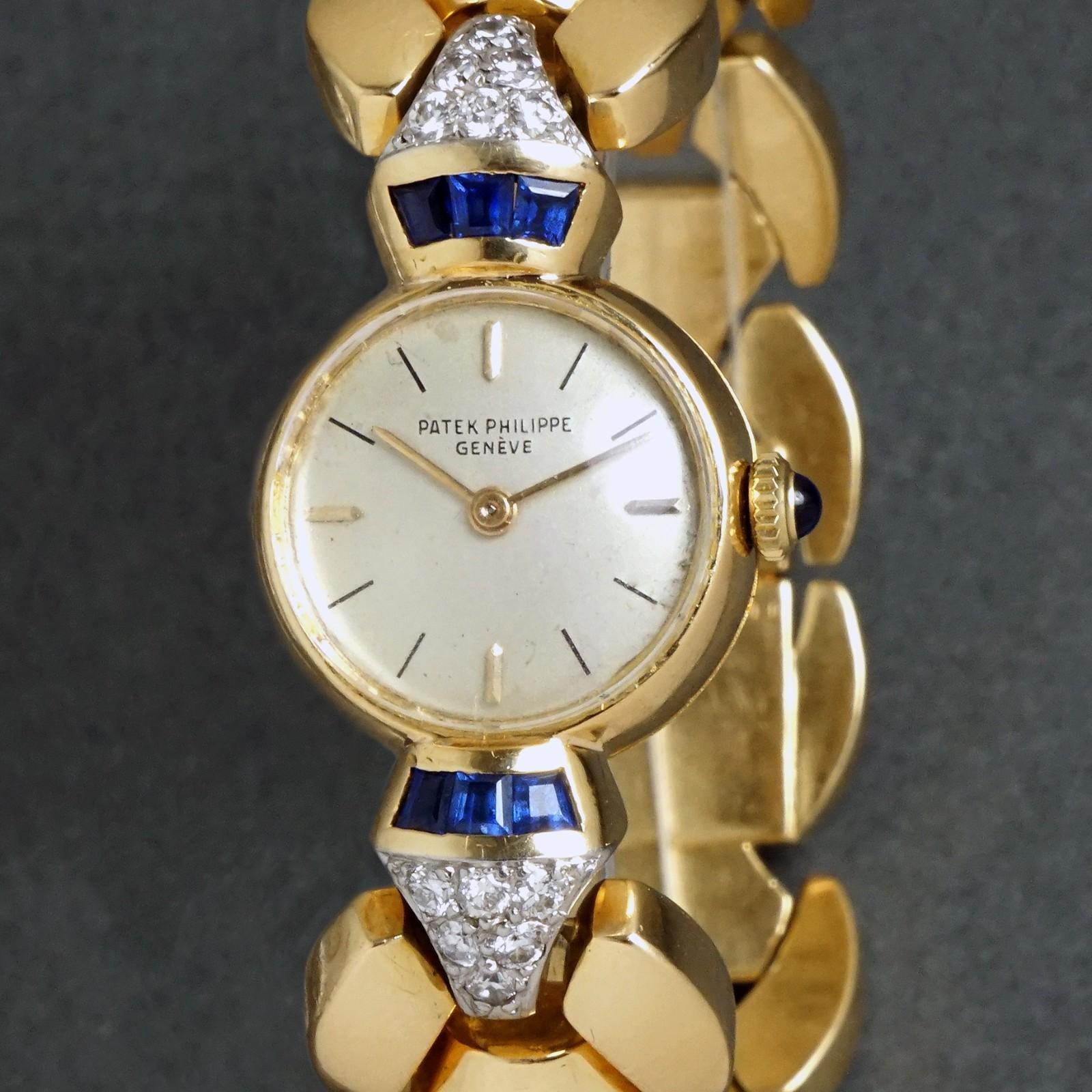 Vintage Patek Philippe Solid 18K Gold Diamond & Sapphire Lady's Bracelet Watch